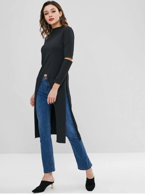 মহিলাদের জন্য উচ্চ নিম্ন স্লিট কাস্টম লংলাইন টি শার্ট