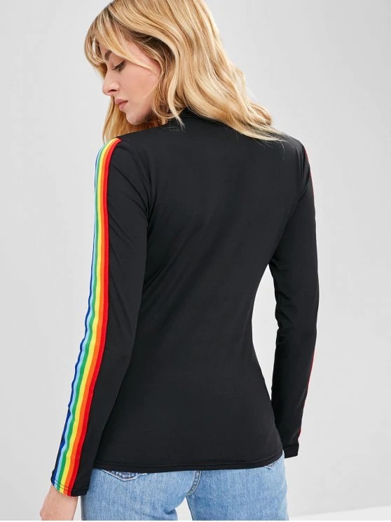 | Sleeve Length(cm): | Full | Product name: | New Fashion Rainbow Stripe Long Sleeve Cotton T Shirt |