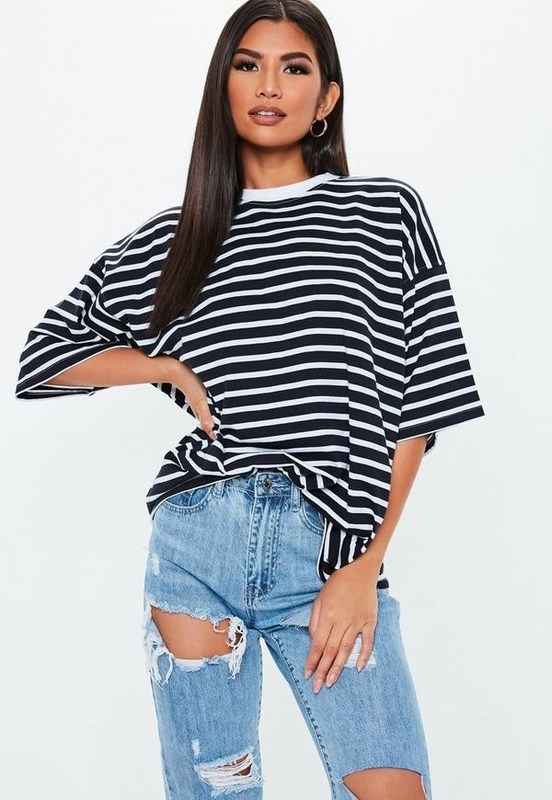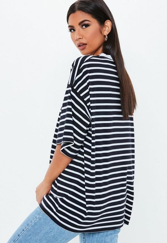 বর্ধিত কাস্টম স্ট্রিপ ড্রপ কাঁধ টি শার্ট মুদ্রণ