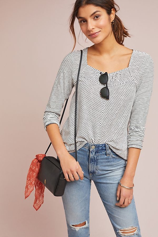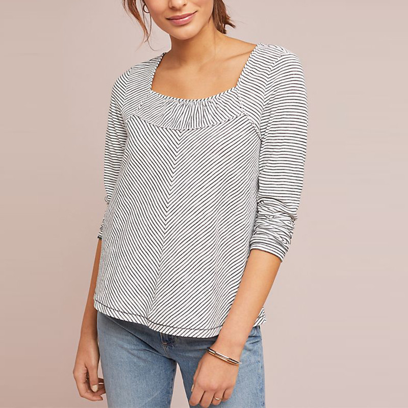 | খেতাব | নারী স্কয়ার নেকলেস লম্বা স্লিভ স্ট্রিপ সঙ্গে পাতলা ব্লাউজ | |