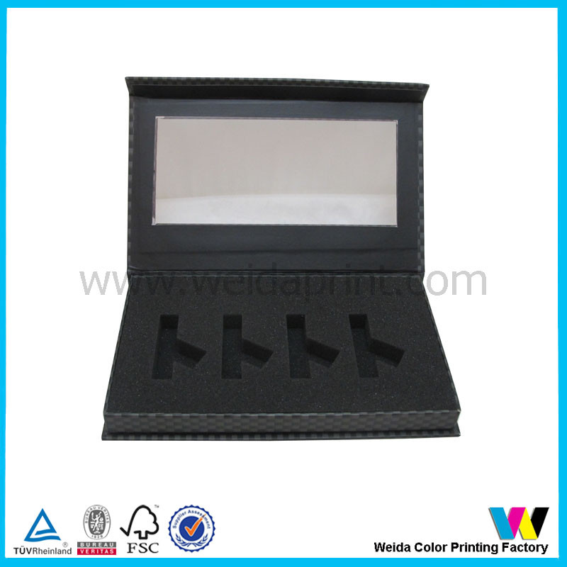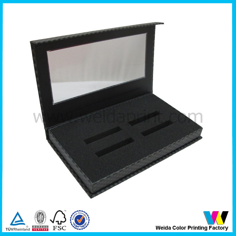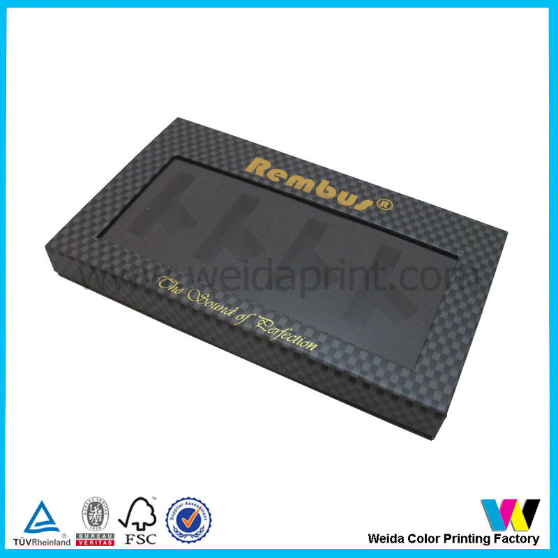 Black Color Paper Packaging Boxes with Clear Plastic Window and black foam