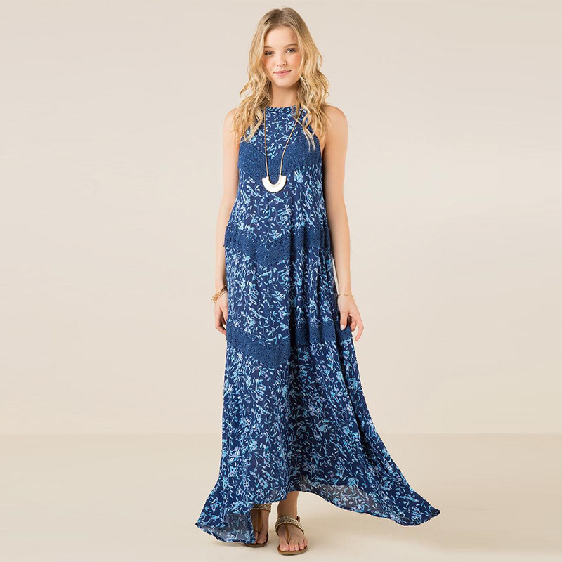 Mooie westelijke hals pattrns het charmeren hippie voor de lengte maxikleding van de damesvloer