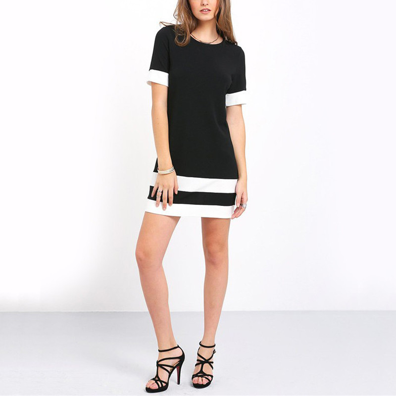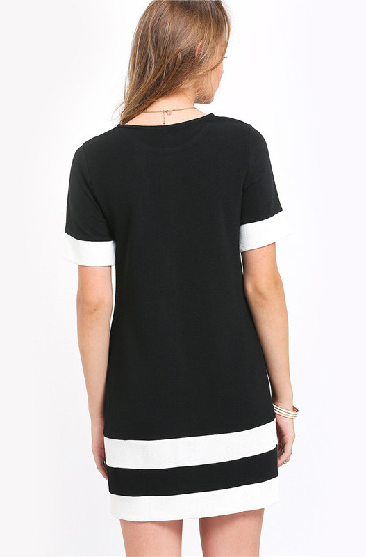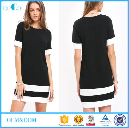 Van de de kledingsbemanning van het meisjes zwarte witte lapwerk toevallige de hals minikleding