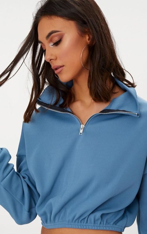 | Longueur de douille (cm): | Complètement | Nom du produit: | Douilles de chandail avant de culture de fermeture éclair longues bleues |