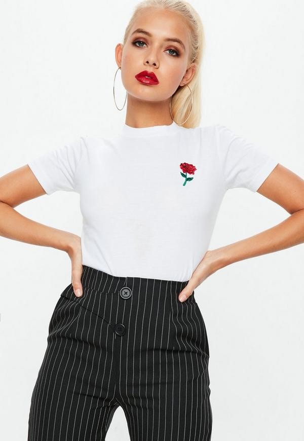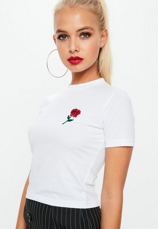 | Titre | Femmes brodées blanches d'habillement de T-shirt de culture de Rose | |