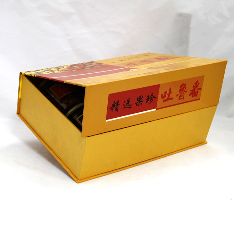 | Article | Boîte-cadeau de papier réutilisés par carton magnétique jaune qui respecte l'environnement pour l'emballage de gâteau de lune de fruits secs de thé |