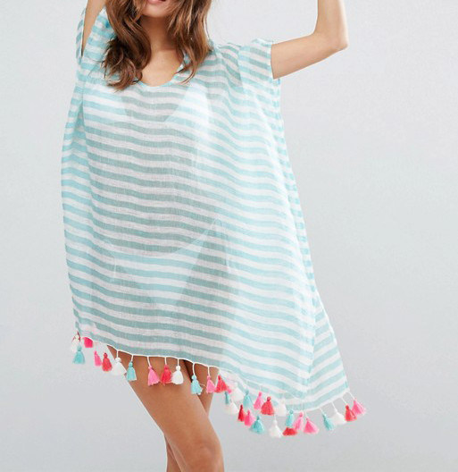 Καυτή πωλώντας κάλυψη παραλιών επάνω στη λεπτομέρεια θυσάνων β-neckline kaftan