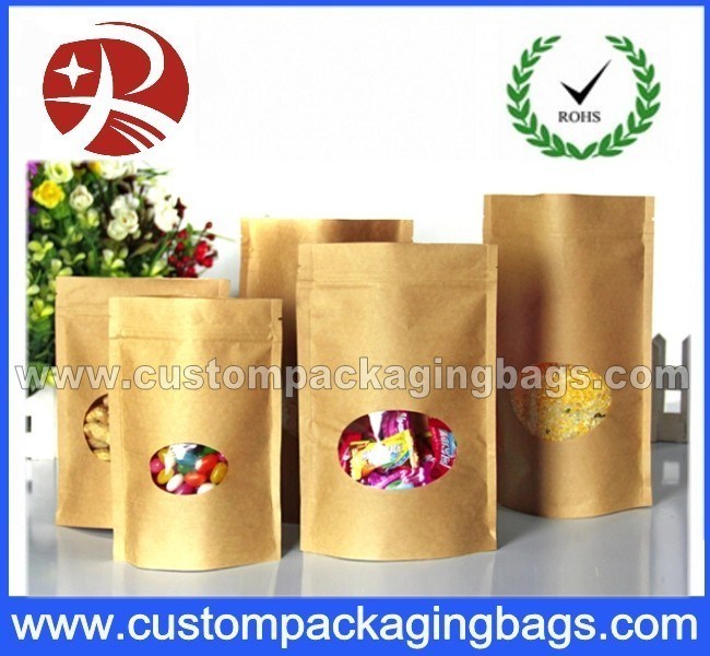 Τοποθετημένη σε στρώματα στάση εγγράφου της Kraft κλειδαριών φερμουάρ επάνω στις σακούλες για τα τρόφιμα με το επίγειο σαφές παράθυρο