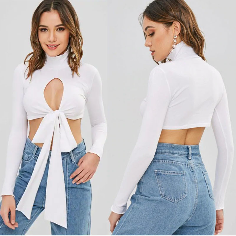 | Style: | Casual | Product name: | Fitness Clothing Women Cutout Turtleneck Tie Crop Top |