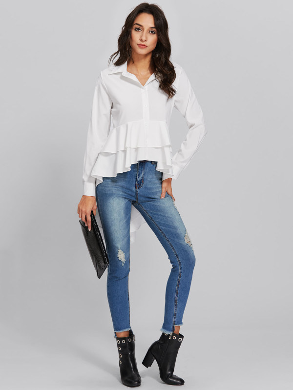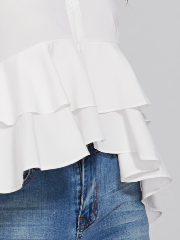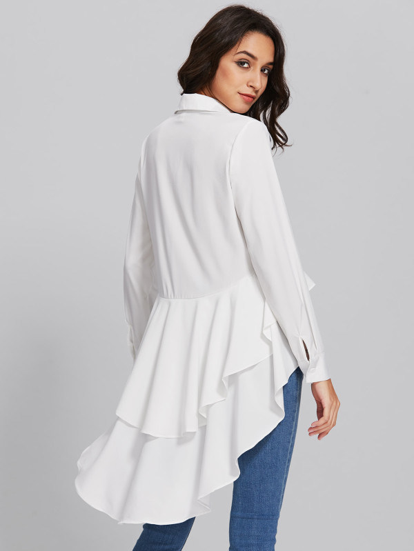 | Sleeve type: | Long Sleeve | Specail Design: | Dip Hem Frill Layered Shirt |