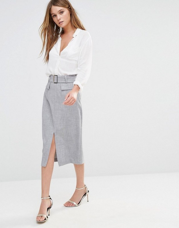 मोर्चा विभाजन बेल्ट पेंसिल महिलाओं औपचारिक फैंसी स्कर्ट शीर्ष डिजाइन