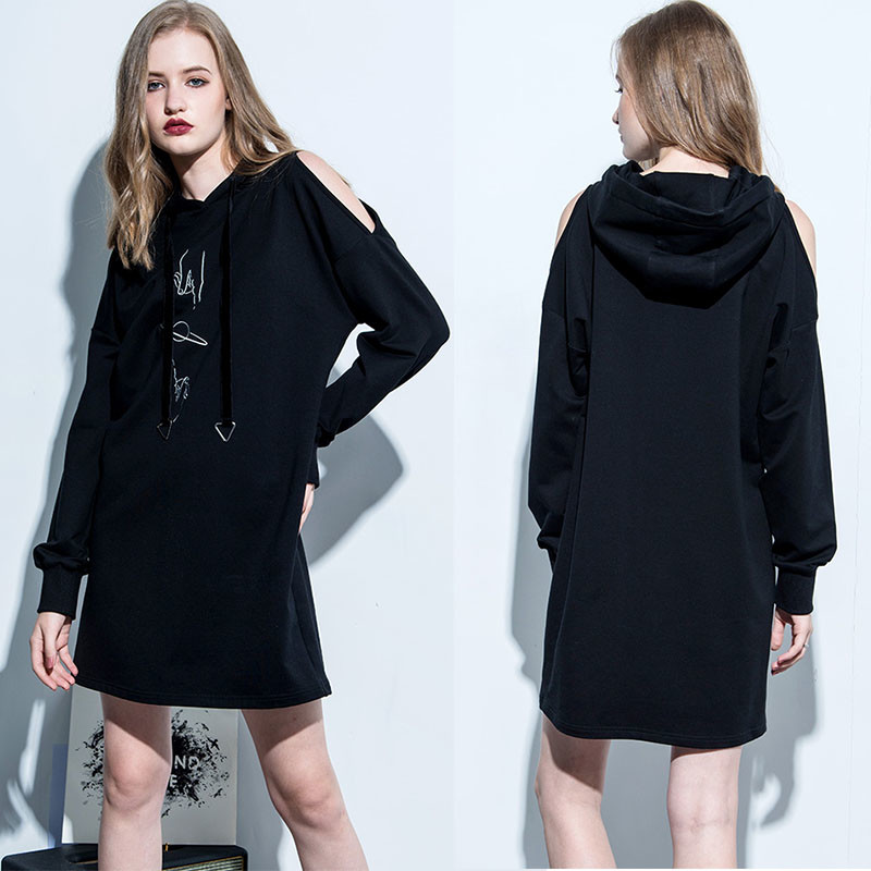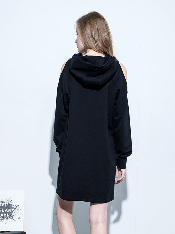 | Judul | Gaun midi hoodie hitam pundak dingin | |
