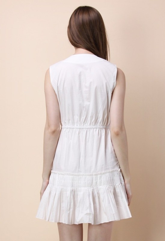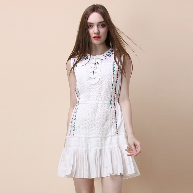 Boho Lipit Gaun Putih 2016 desain fashion bordir ruffle dress pendek