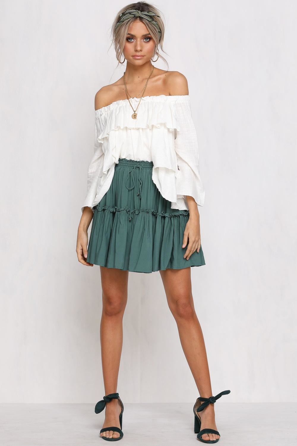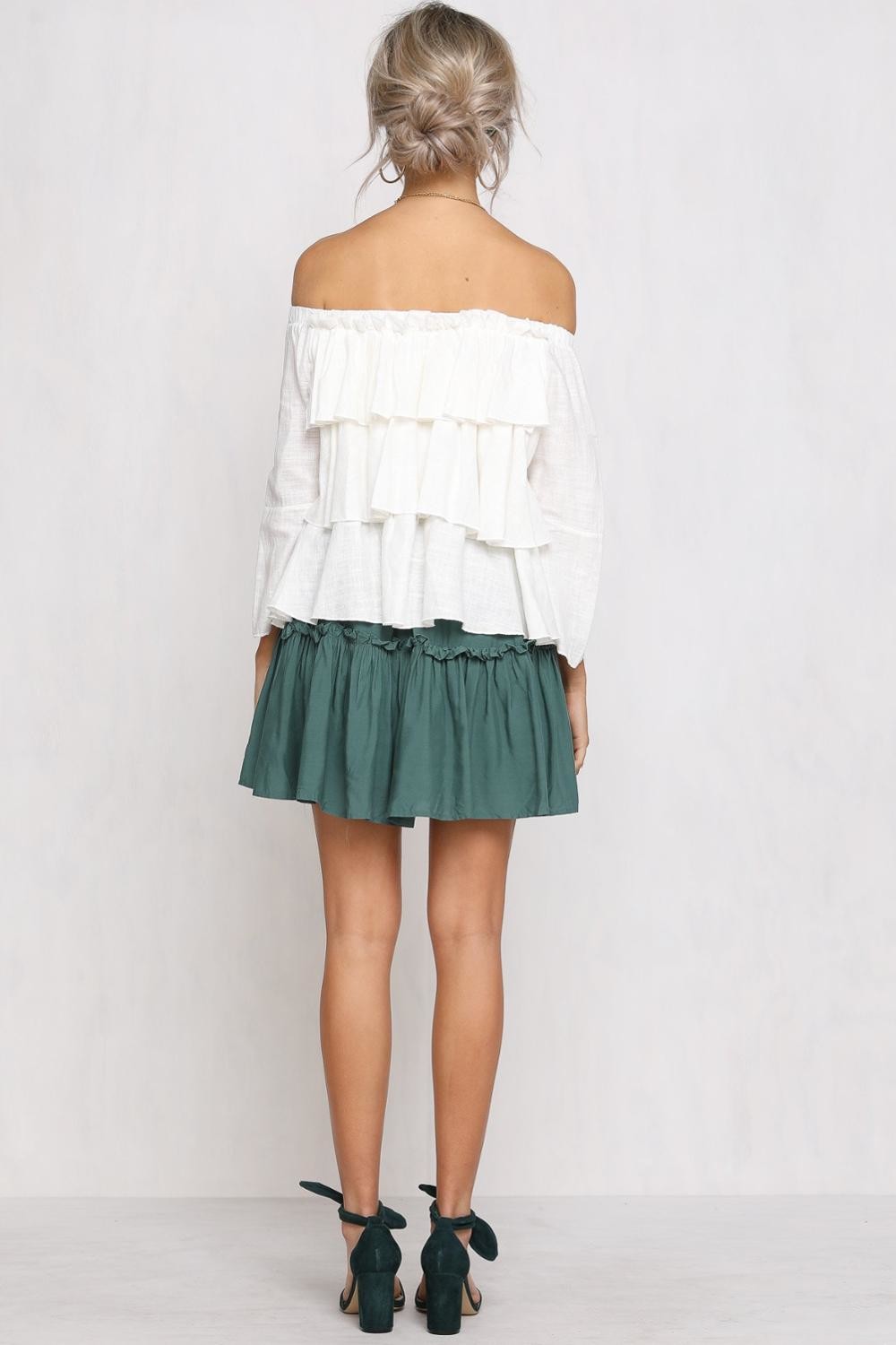2017 Terbaru desain one shoulder tops wanita choker-neck ruffle overlay lengan tops