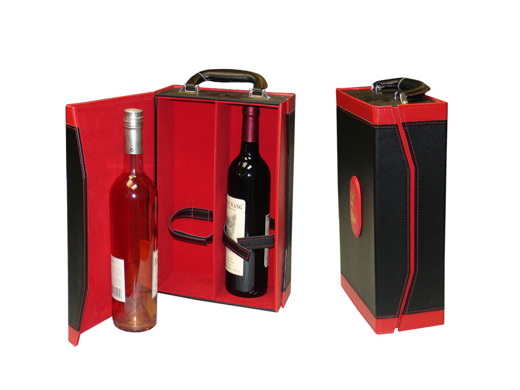Kotak anggur kulit dengan pegangan