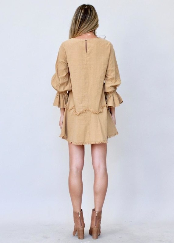| Titolo: | vestito cachi 100% dal collo del mestolo del cotone con dettagliare sfilacciato | |