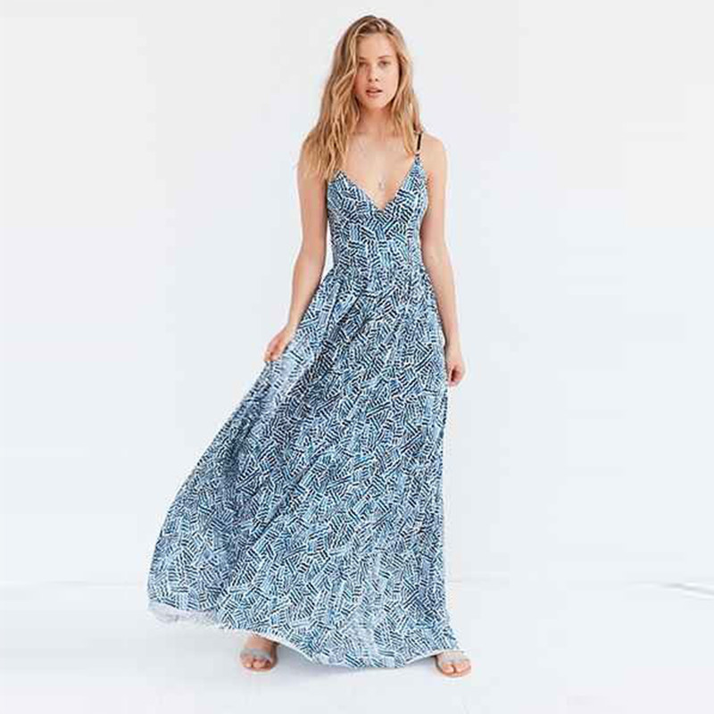 Personalizzi vestito chiffon dalla cinghia di spaghetti di modo dell'estate delle donne il maxi con la rete posteriore del legame