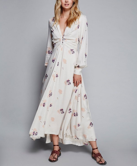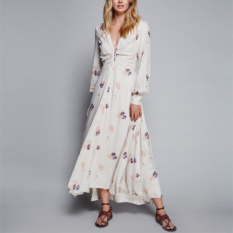 Vestito dalla manica lunga della v-scollatura della stampa floreale maxi per le donne