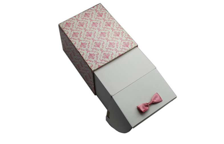 Contenitore di regalo d'imballaggio di carta rosa con il legame Sticked, scatole di plastica riciclate
