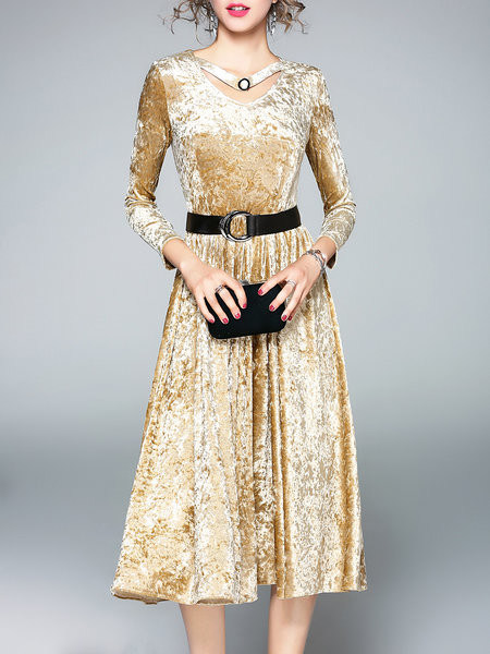 | スリーブ スタイル: | 長い袖 | 製品名: | Aラインの長い袖の優雅なミディの服 |