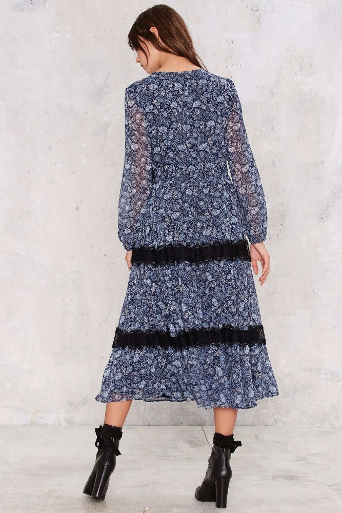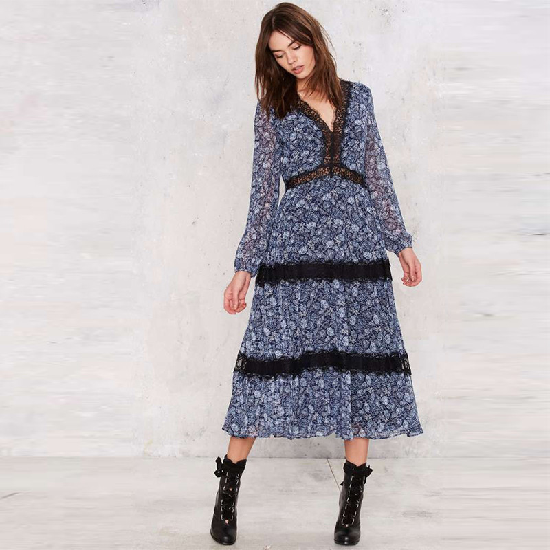レースによってステッチされたマキシの服は長い袖のイスラム教のイブニング・ドレスを印刷しました
