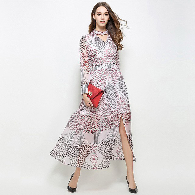 2017人の方法良質軽くて柔らかいマキシの女性の服の花の印刷物の長い服