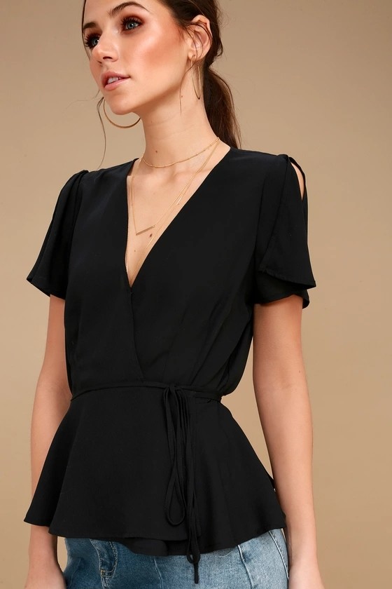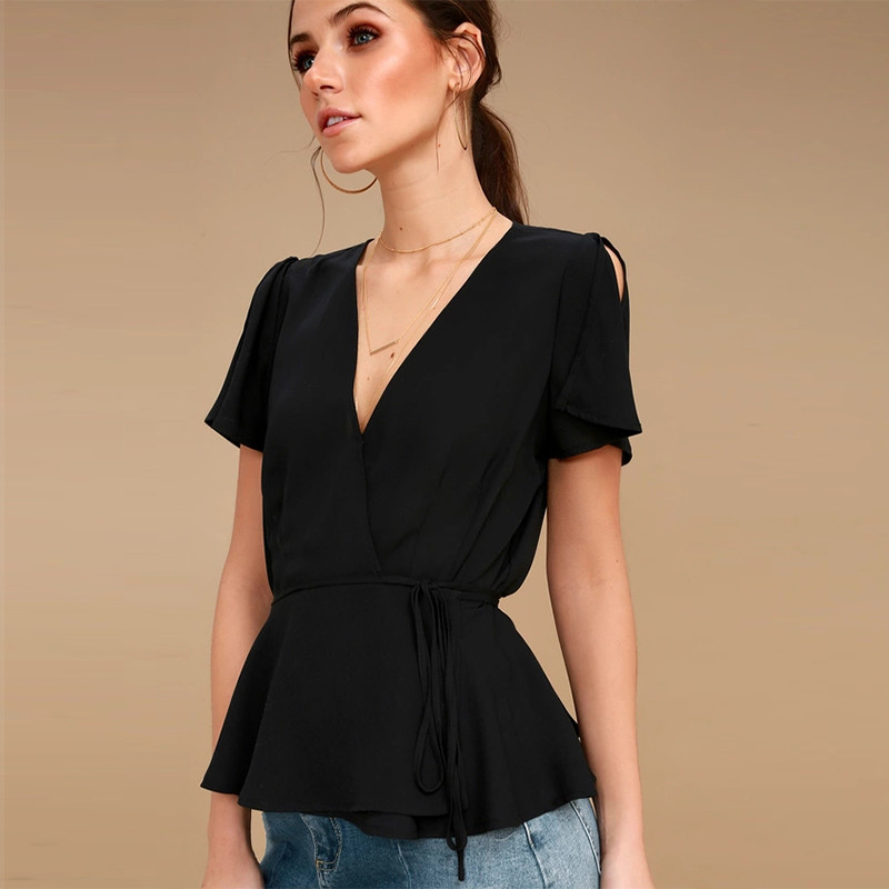 | 設計: | 沈む襟足(および謙虚さのスナップ)、fluttery短い袖およびわずかなpeplumのヘムが付いている結ぶ覆いのキャミソールを渡るジョーゼットの風がそよぐ広がり。 | |