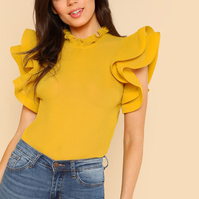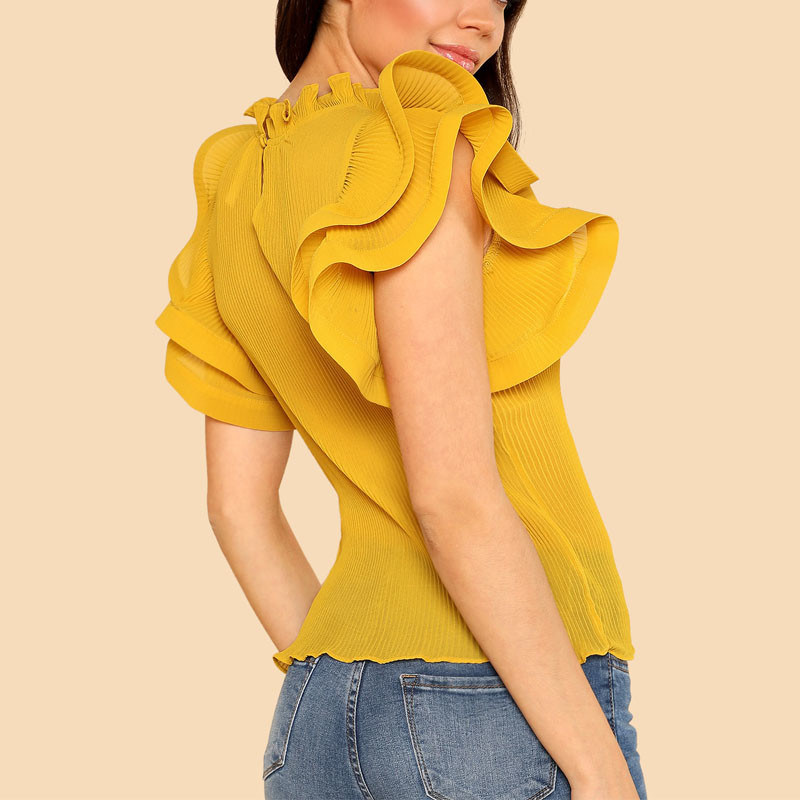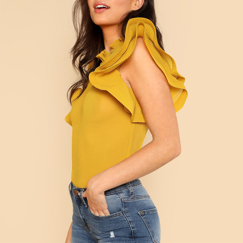2017最も最近の設計1肩はチョークバルブ首のひだの上敷の袖の女性上を越えます