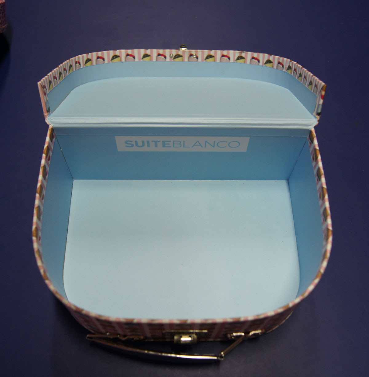 금속 자물쇠를 가진 마분지 여행 가방. 뜨거운 포일 로고 및 가득 차있는 인쇄. 각종 디자인 및 어떤 크기에서 유효한. |