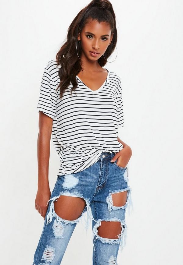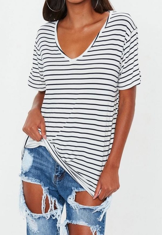 | عنوان | پیراهن زنانه سفید و نیروی دریایی راه راه V neck | |