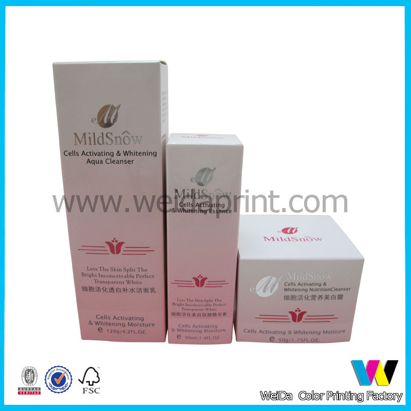 | Product Name: | Whole Set Pink Cosmetics Paper Packaging Boxes with Silver Logos for Face Cream , Perfume , Facial Cleanser | Material: | Paperboard |