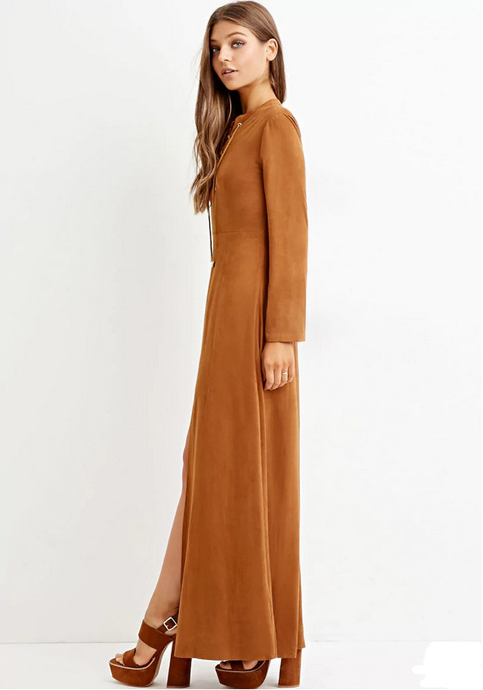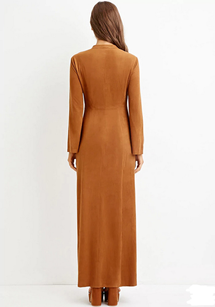 damska sukienka z długim rękawem z przodu z rozcięciem