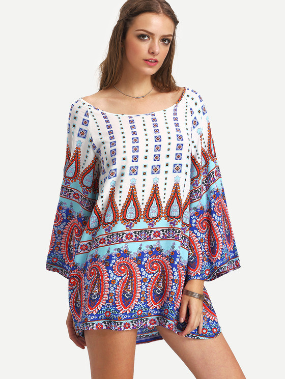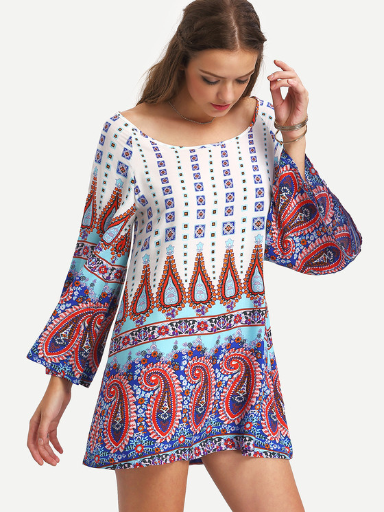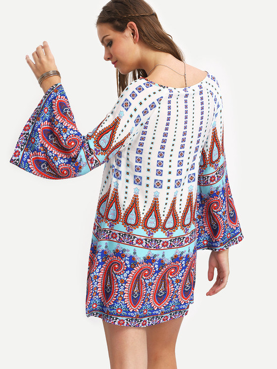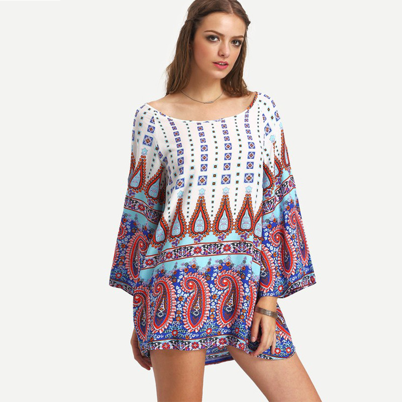 Wielobarwna sukienka z nadrukiem w stylu hippie afrykańskiego