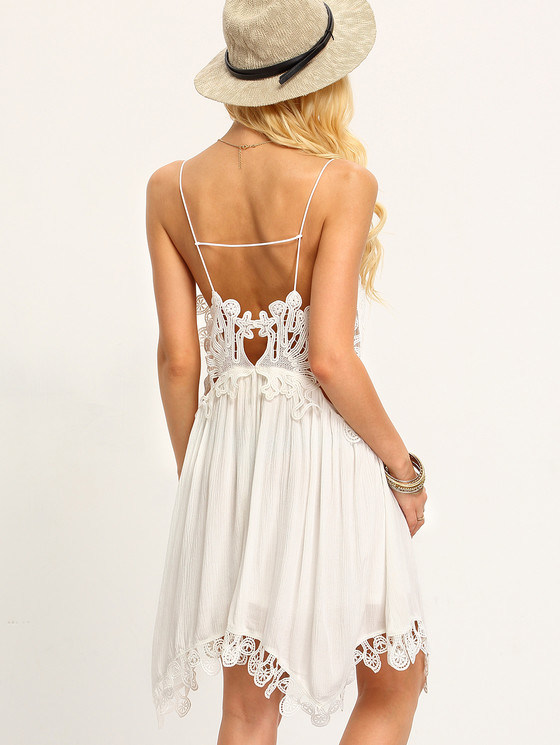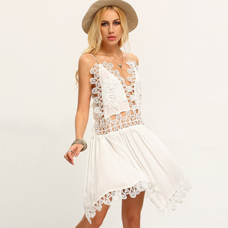 Spaghetti pasek hollow crochet dress odzież damska 2016 sukienki