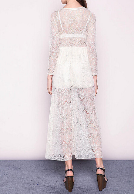 Nowa sukienka z długim rękawem i koronkową białą sukienką typu maxi