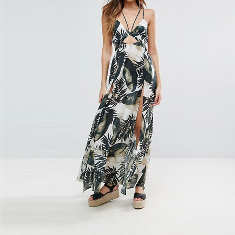 2017 Hot sprzedaży kwiatów maxi sukienka tropikalna palma drukowana długa sukienka nn beach