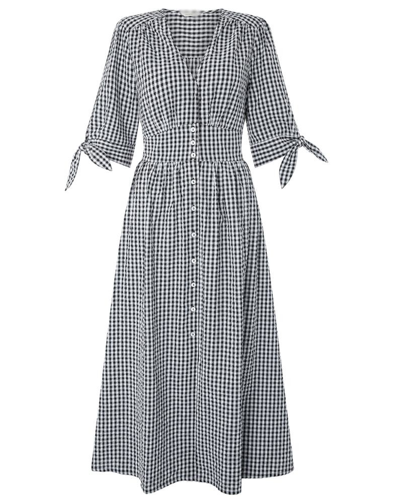 | | Título | Vestido ocasional de midi das mulheres do guingão |
