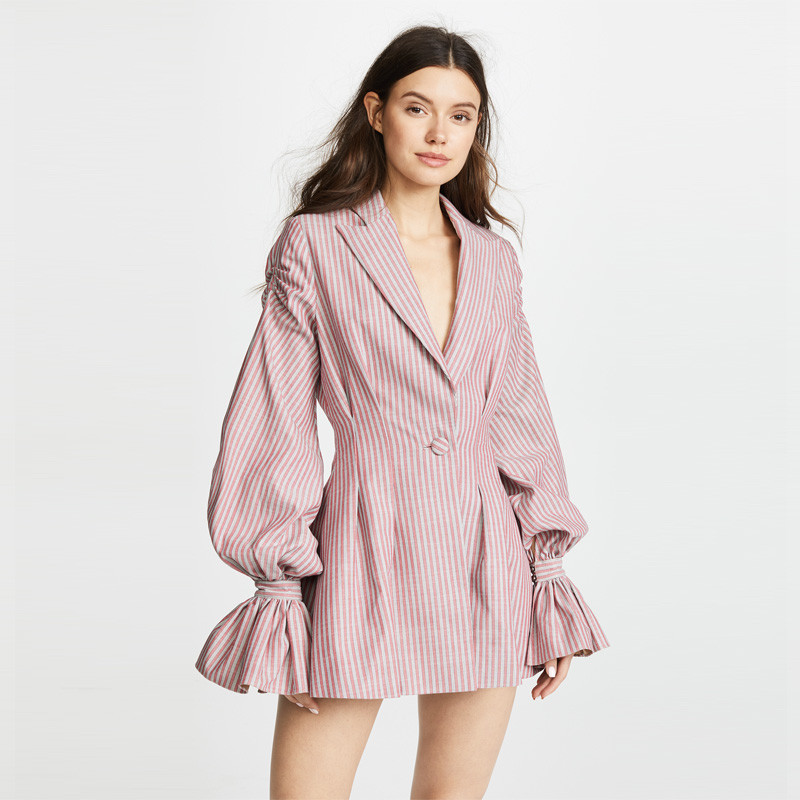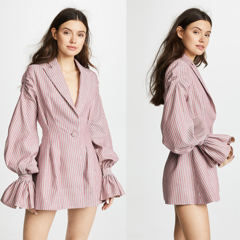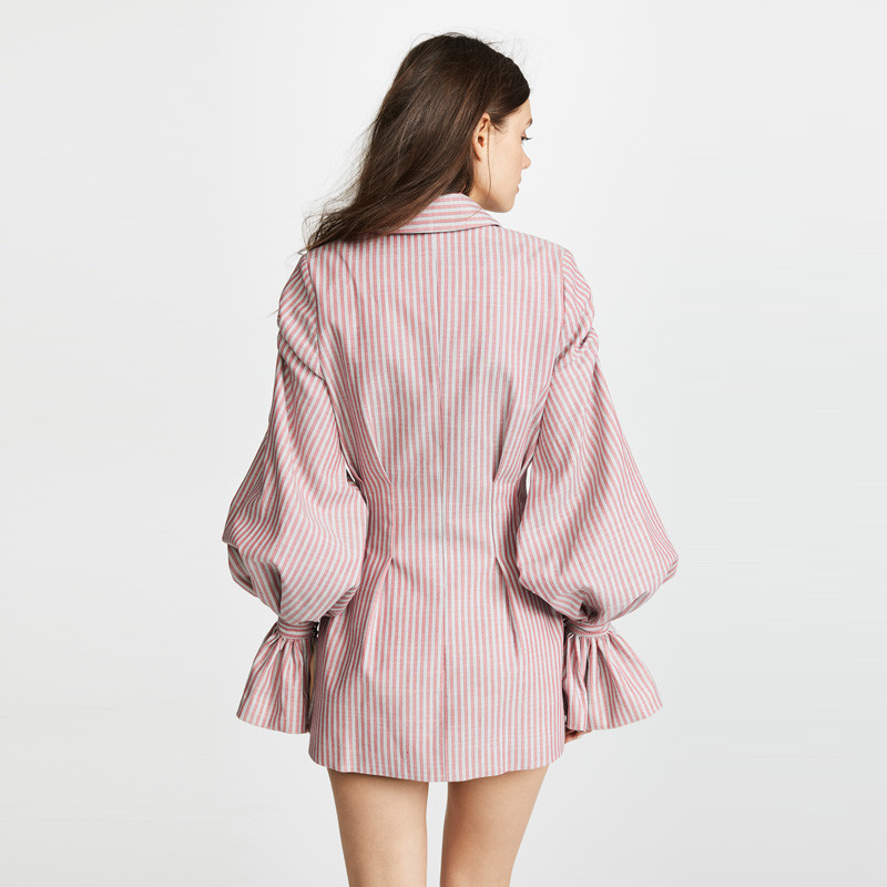 | | Título | O ballon da listra sleeves vestido do blazer do decote em V o mini |