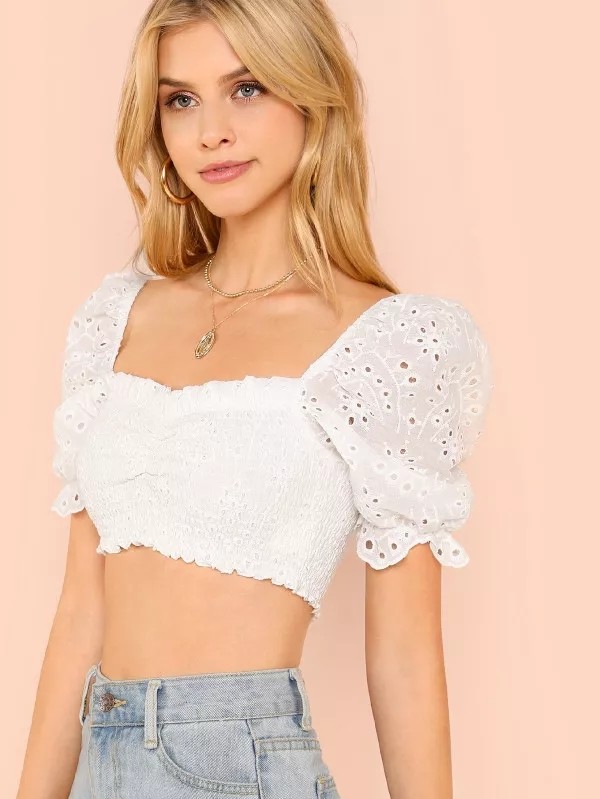 | Temporada: | Verão | Artigo: | Parte superior da blusa da colheita do bordado do ilhó |
