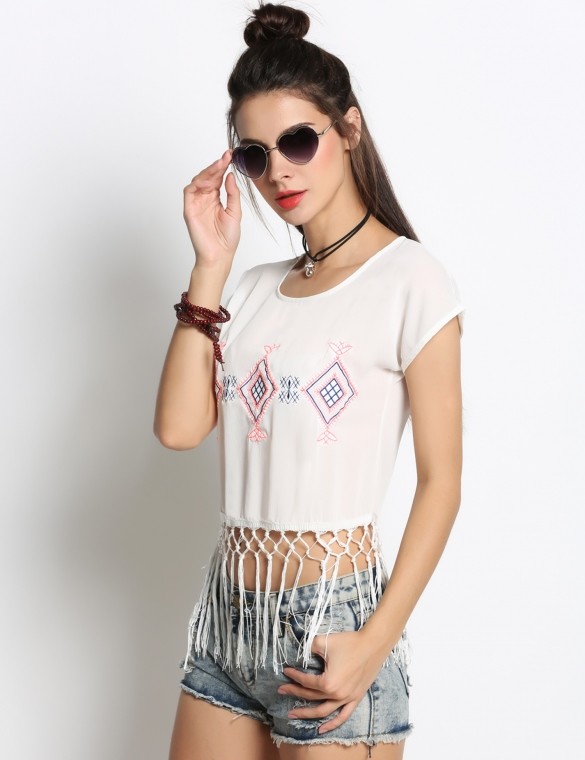 | Nome do produto: | Branco novo parte superior bordada da colheita para mulheres ocasionais | cor: | Como a imagem e personalizado |