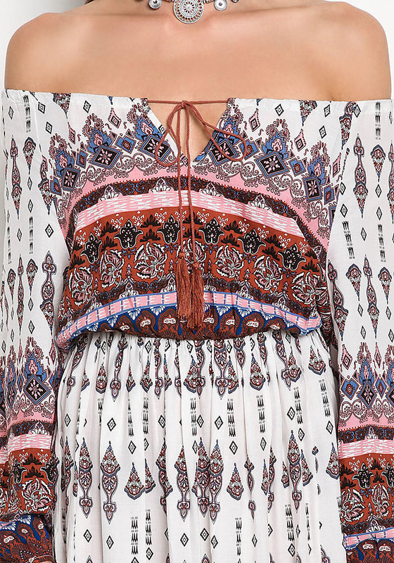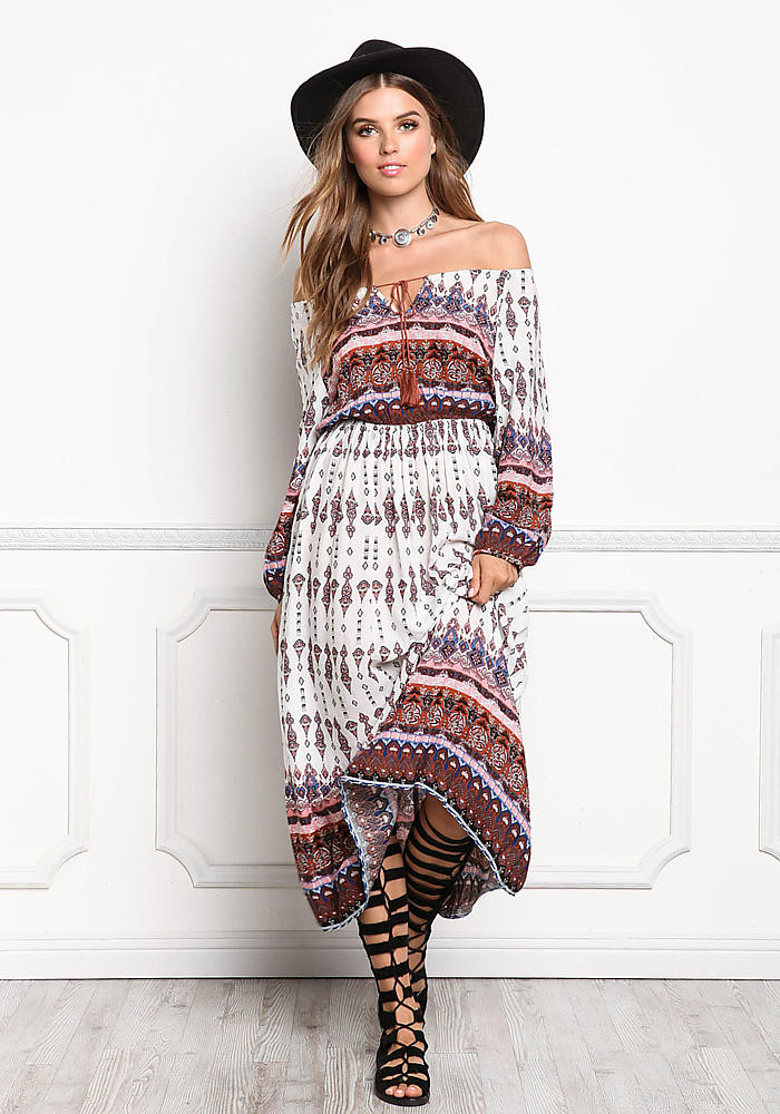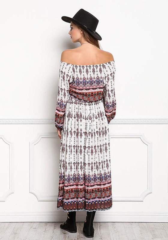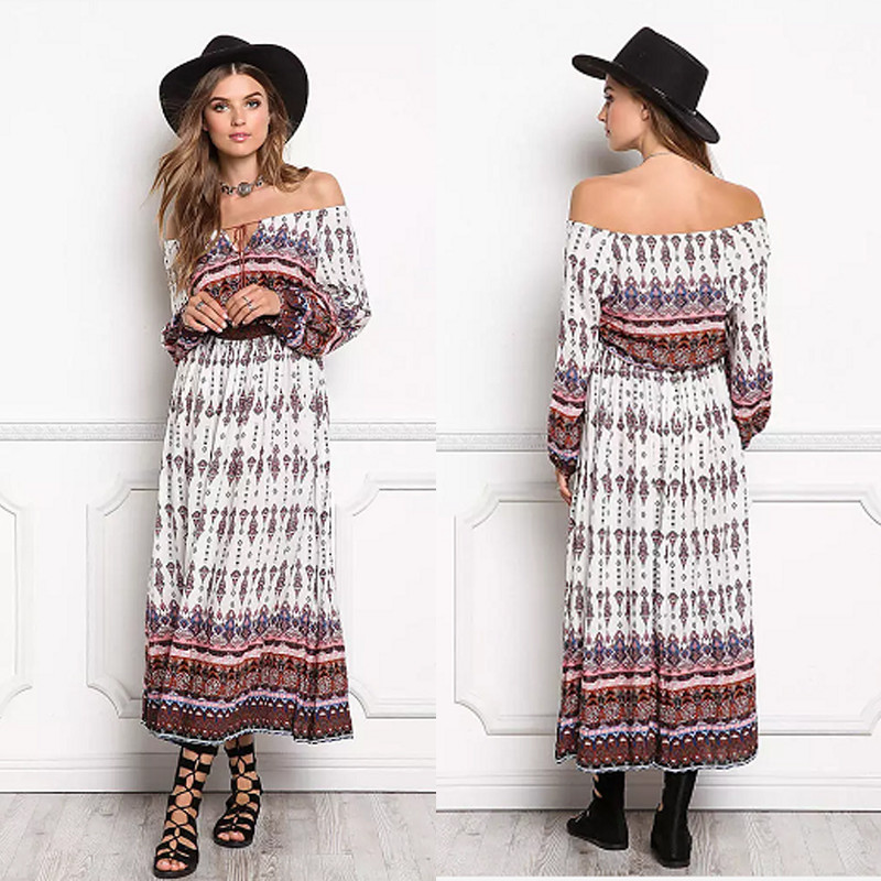 Платье длинного рукава в-неклине флористической печати макси для женщин