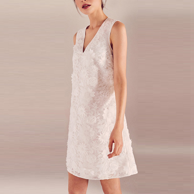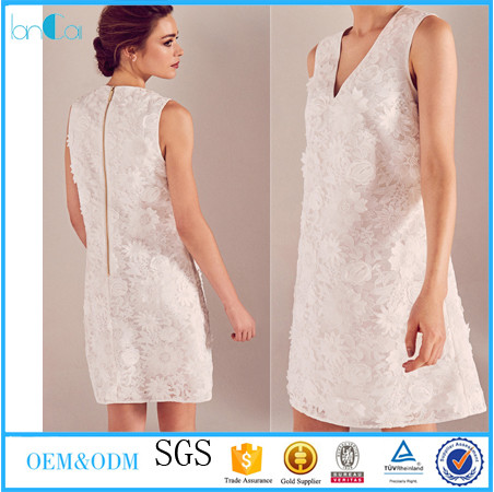 Платье шнурка 2018 женщин моды элегантных белым вышитое летом безрукавное