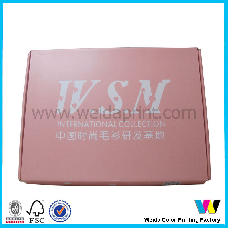 Corrugated Pink Printed Paper Packaging Boxes with White Brand Name for Sweaters Packaging