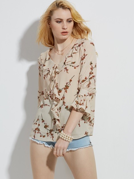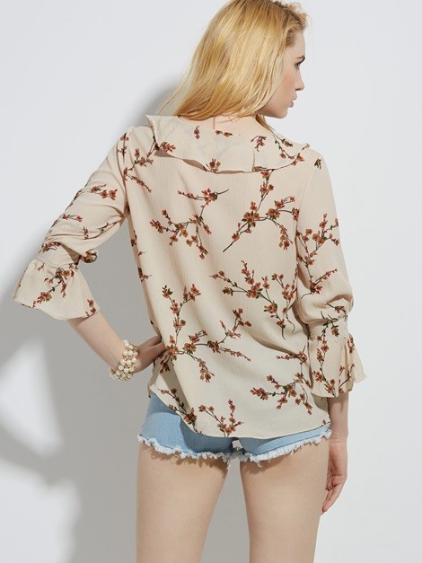 | ออกแบบ: | Flare Sleeve & V Neck & Printed & Flower Print | |