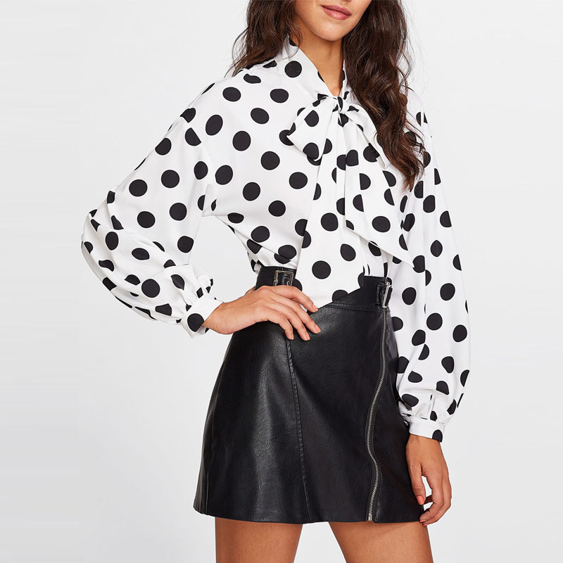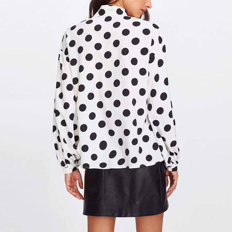 | Product Name: | Fashion bowknot polka dot long sleeve women tops | Design: | Tie neck |