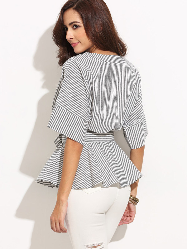 | Item: | Women Wrapped Peplum Blouse | Color: | Black and White & Customized |