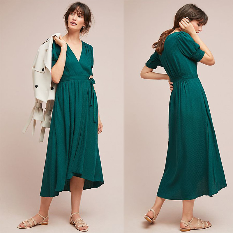 | Color: | Green | Design: | V neck, Short Sleeve |