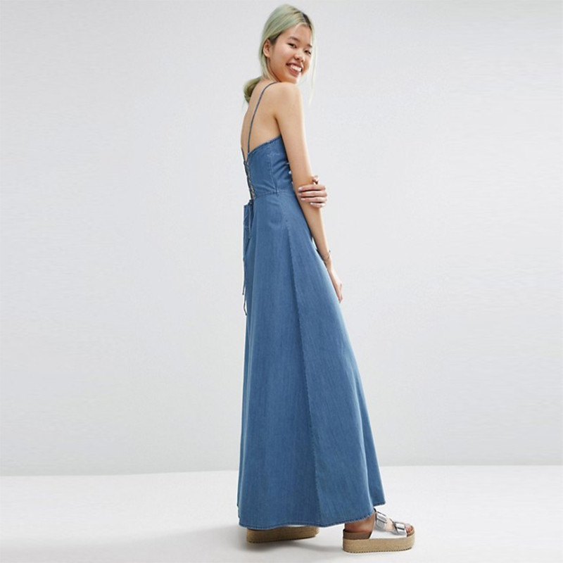 | Feature: | Anti-Static, Anti-Wrinkle, Breathable, Dry Cleaning, Eco-Friendly, Plus Size, Washable | Product name: | Maxi Dress With Tie Back Denim One Piece Dress LC3029-G |