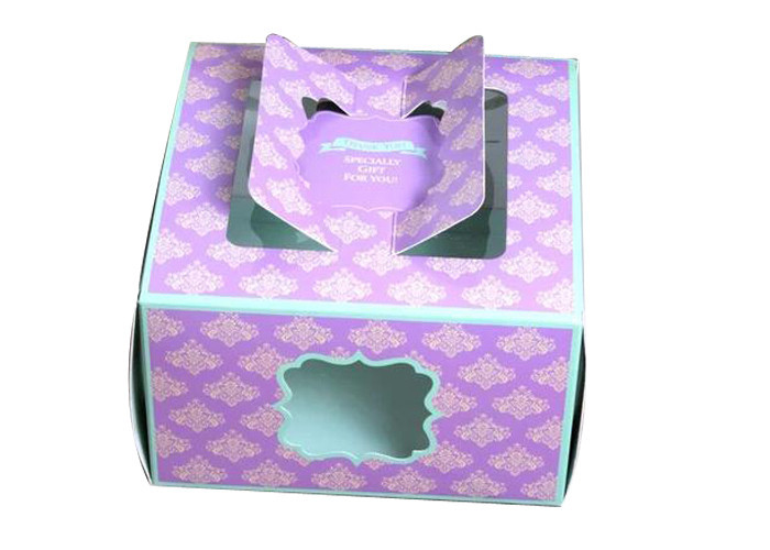 Üç Taraf Plastik Pencere Zarif Mor Taşınabilir Doğum Günü Pastası Kutusu