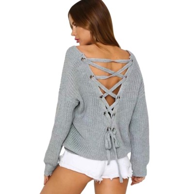 | Decoration: | Lace Up | Product Name: | V Neck Back Lace Up Pullover Sweater |